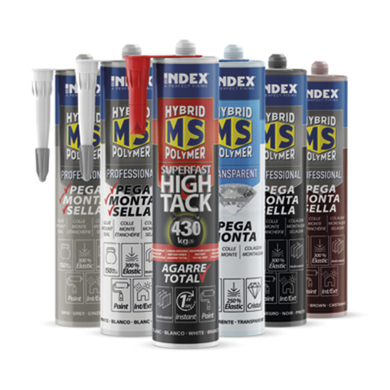 Neben chemischen Verbindungselementen bietet INDEX auch andere Lösungen wie MS-Hybridpolymer-Klebstoffe, Silikone und Polyurethan-Schaumstoffe zum Dichten, Kleben oder Isolieren an.