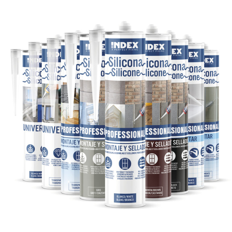 • Schließlich sind unsere Silikone für die Montage und Abdichtung von Fugen auf verschiedenen Oberflächen im Innen- und Außenbereich konzipiert. Unser professionelles Silikon ist in verschiedenen Farben erhältlich und kann auf allen Arten von Materialien wirksam eingesetzt werden. Essigsilikon eignet sich perfekt für die Montage von Fenstern, Verglasungen und gehärtetem Glas auf Aluminiumrahmen, und unser SANITAR-Silikon wurde entwickelt, um die Bildung von Pilzen und Schimmel in Umgebungen mit hoher Luftfeuchtigkeit wie Küchen und Bädern zu verhindern.