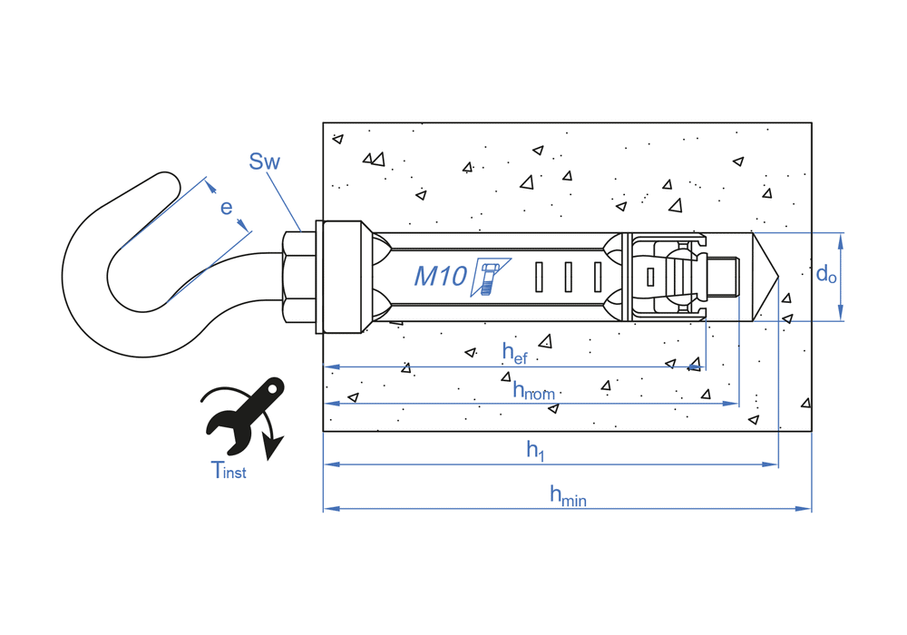 | Code | Abmessung | Nº ANTRIEB | HAKENÖFFNUNG | Ø ÖSE | Mindestbestellmenge | Stk Verpackung | Stk Umverpackung | EAN | Technische Info. |