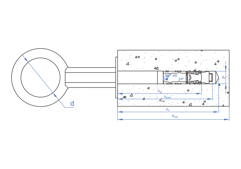 | Code | Abmessung | MIN. BOHRLOCHTIEFE [mm] | SETZTIEFE [mm] | Ø ÖSE | Mindestbestellmenge | Stk Verpackung | Stk Umverpackung | EAN | Technische Info. |