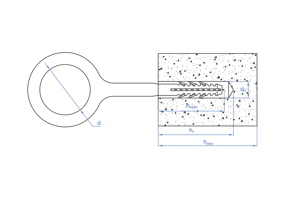 | Code | Abmessung | MIN. BOHRLOCHTIEFE [mm] | SETZTIEFE [mm] | Ø ÖSE | Mindestbestellmenge | Stk Verpackung | Stk Umverpackung | EAN | Technische Info. |