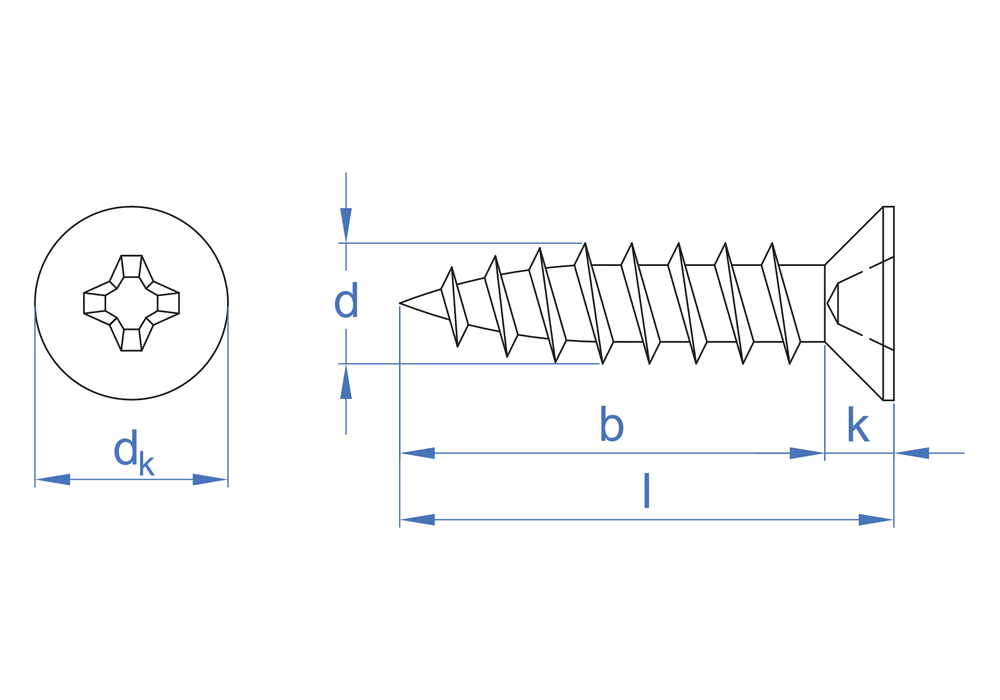 Schraube für PVC, mit Senkkopf und PH-Schlitz. Kann zum Befestigen von Metallbeschlägen mit hoher Belastung an PVC-Profilen verwendet werden. Sie kann auch als Reparaturschraube verwendet werden, wenn andere Schrauben mit kleineren Abmessungen zu weit eingeschraubt wurden. Sie hat ein 40°-Gewinde für Kunststoffe und eine S-Spitze, mit der PVC und andere Kunststoffe direkt durchbohrt werden können. Sie ist aus Stahl mit brünierter Beschichtung gefertigt.