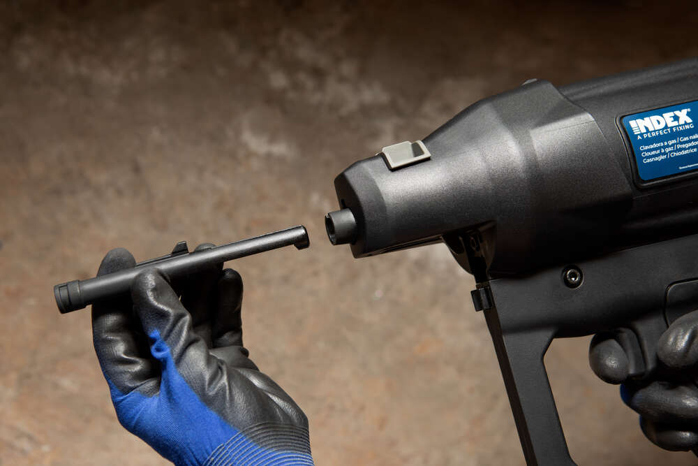 Gaspistolenrohr, kompatibel mit dem Gasnagler FG60GUN. Er wurde speziell für Befestigungen in Elektroinstallationen entwickelt. Er kann für die Installation von Elementen wie Kunststoffklammern oder Flanschsockeln verwendet werden.