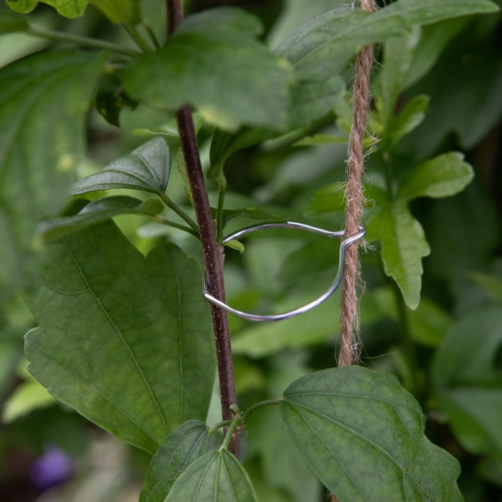 Plastic-coated twine for trellising vines and trees, available as a loop, a ball and pre-cut.