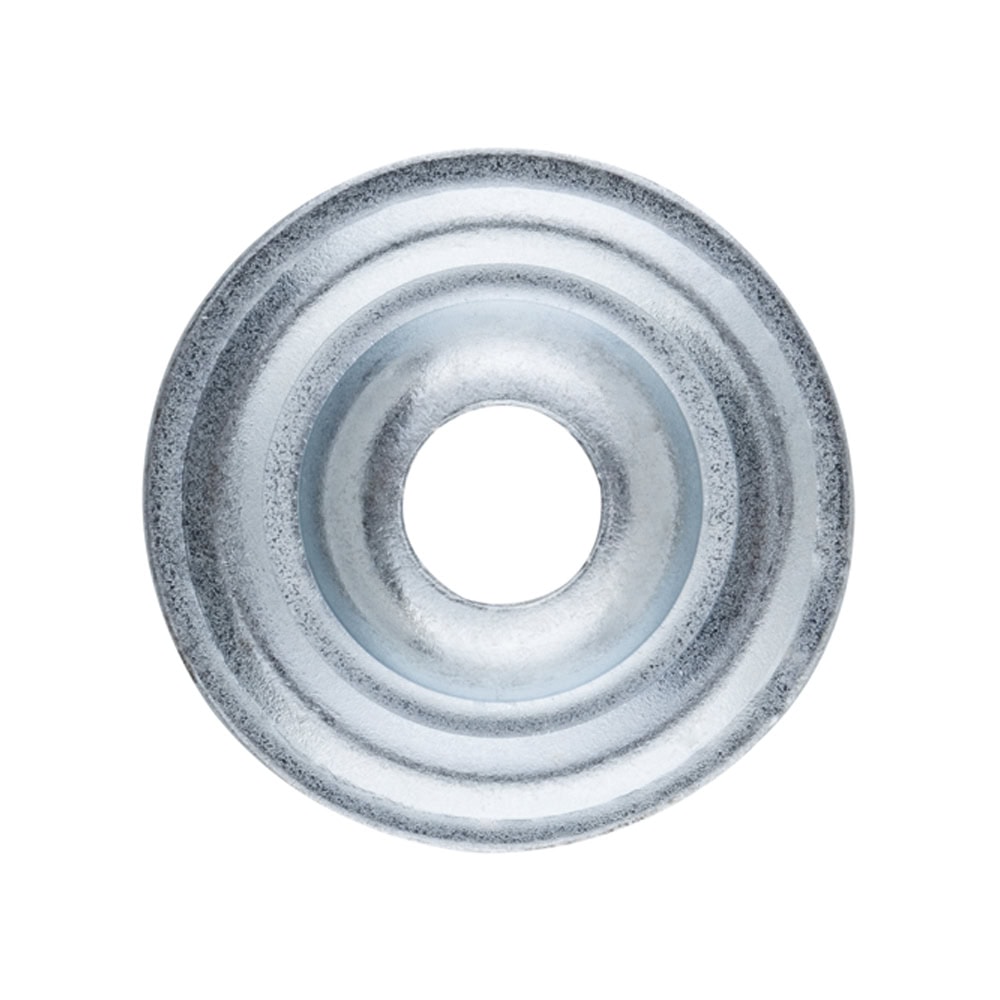 Flat rosette for clamps. Its use facilitates the installation of pipes using single or double clamps. It allows the pipe to be separated from the base material. It is made of zinc-coated steel.