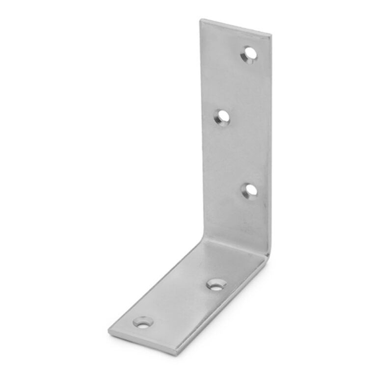Bracket for fixing wooden pieces, designed for non-structural angular joints such as connecting posts. It can be easily used on solid, laminated or composite wood, installing it with the help of screws or lag screws. It has two sides of different lengths, which incorporate holes of the same diameter. It is made of zinc-plated steel.