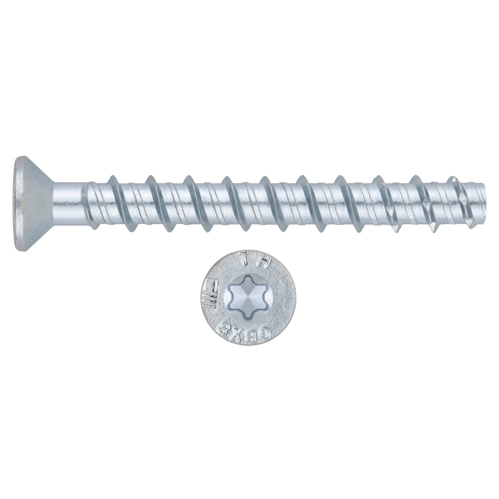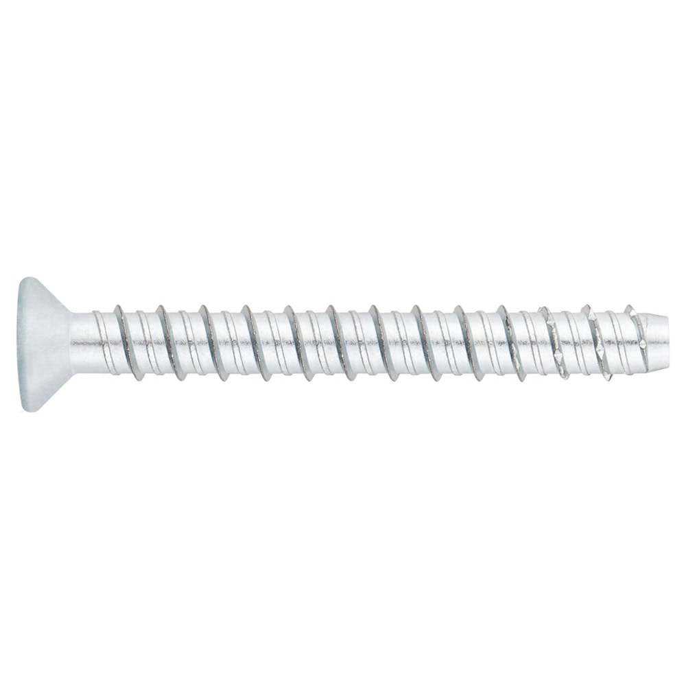 Vis de fixation directe à betón à tête fraisée, pour béton fissuré et non fissuré. Conçue pour fixer des éléments soumis à des charges élevées. La tête fraisée permet à la vis de rester affleurante après le montage. Démontable et réutilisable. Homologuée ETE Opt.1. Fabriquée en acier zingué.