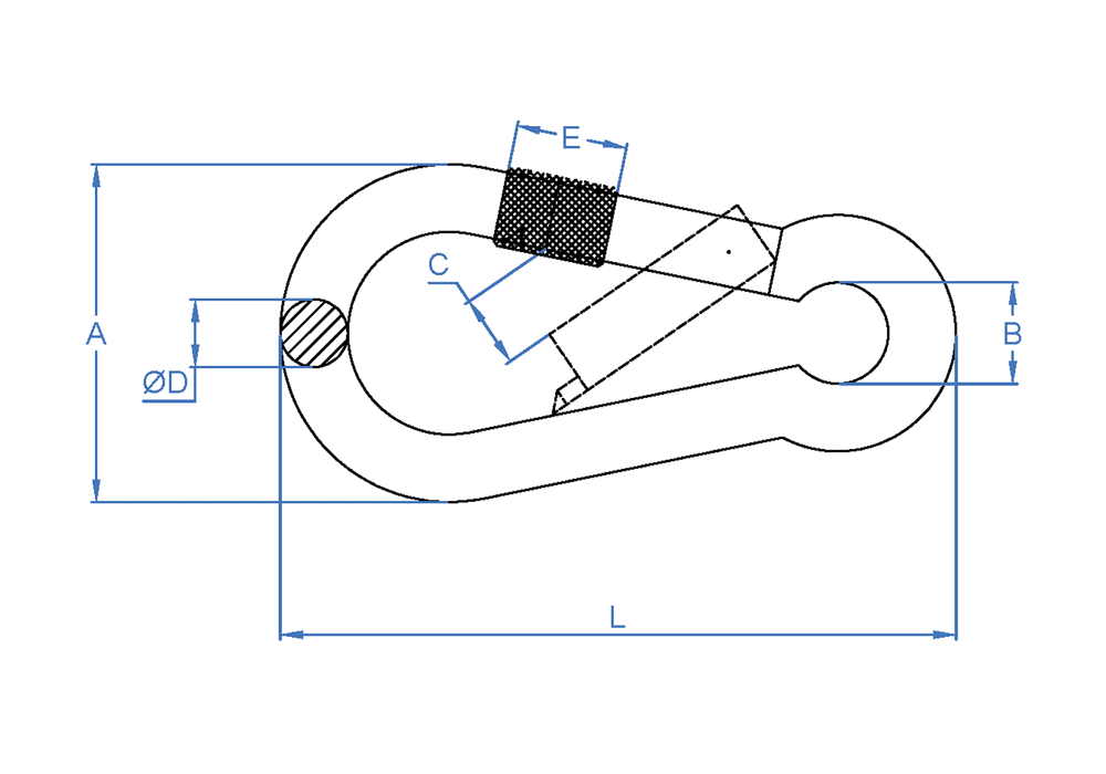 | Codice | Metrica | Misura | Ø CAVO | Ø Gancio | Ø Anello | Pz Scatola | Pz Masterbox | EAN | Info. Tecnica |