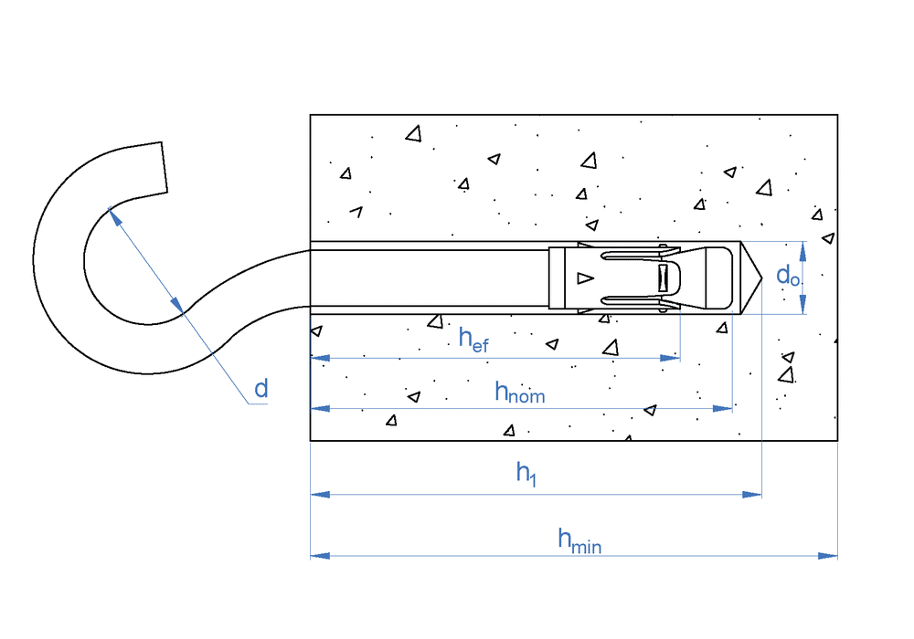 Ancoraggio a percussione con gancio, adatto per calcestruzzo fessurato e non fessurato. Progettato per fissare elementi con carichi bassi su soffitti o altre superfici. Il gancio consente il montaggio di cavi o funi in diversi tipi di installazioni. Omologato ETE per applicazioni non strutturali. Ancoraggio ad espansione, con perno in acciaio zincato e clip in acciaio Atlantis C3-L.