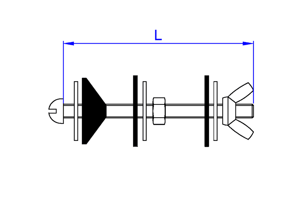 Kit di fissaggio per fissare la cassetta di scarico al WC. Include due viti in acciaio inossidabile; due rondelle in acciaio zincato; due rondelle e due coni in gomma; due dadi esagonali e due dadi a farfalla in acciaio zincato. Assicura un fissaggio resistente e a tenuta stagna della cassetta di scarico, riducendo al minimo il rischio di perdite.