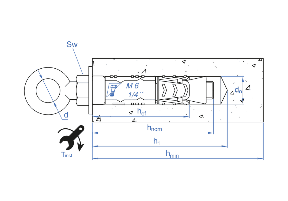 Ancoraggio a espansione con golfare forgiato, adatto al fissaggio di elementi a medio e alto carico in materiali pieni e cavi. Particolarmente utile per materiali a bassa resistenza che richiedono una maggiore capacità di espansione. Realizzato in zama 5 e acciaio zincato.
