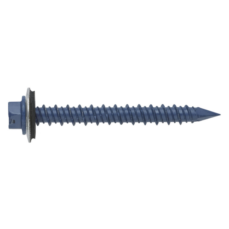 Tornillo de fijación directa con cabeza hexgonal y ranura. Incorpora una arandela con goma EPDM para garantizar la estanqueidad de las uniones. Apto para materiales como para hormigón, ladrillo macizo, bloque o paneles prefabricados. Fabricado en acero al carbono estampado con recubrimiento blue ruspert.