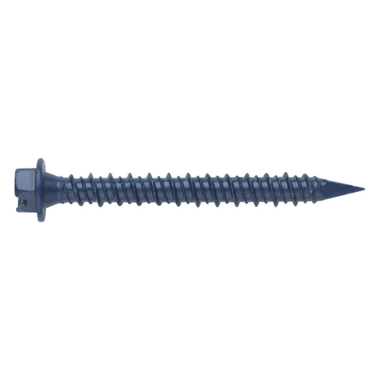 Tornillo de fijación directa con cabeza hexgonal y ranura. Apto para materiales como para hormigón, ladrillo macizo, bloque o paneles prefabricados. Rosca especial high-low 60° / 40° estriada. Fabricado en acero al carbono estampado con recubrimiento blue ruspert.