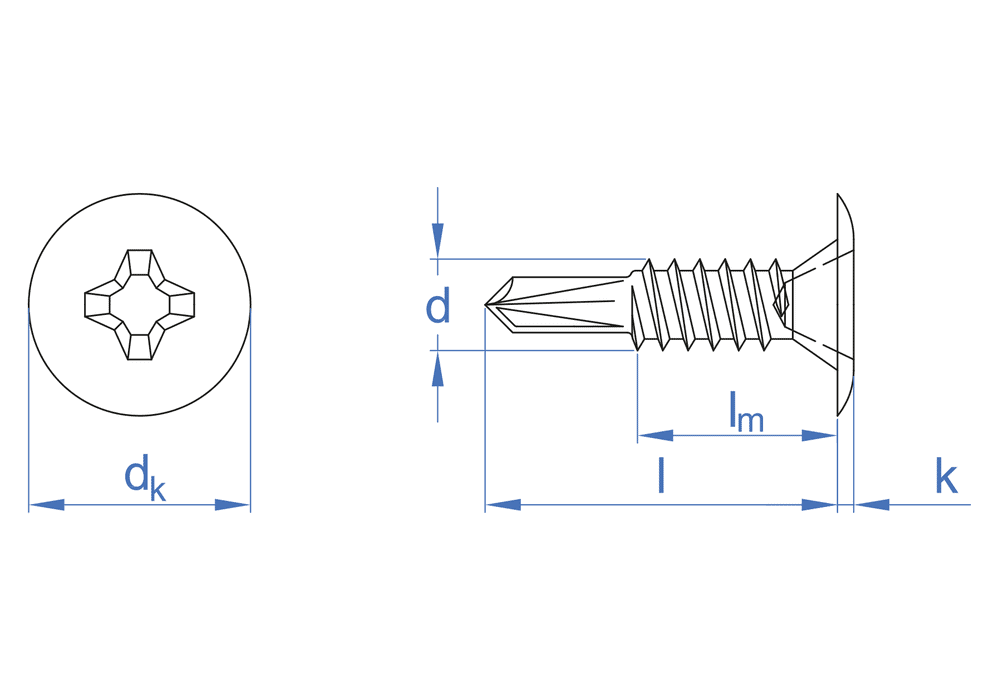 Tornillo autotaladrante de cabeza extraplana y huella PH