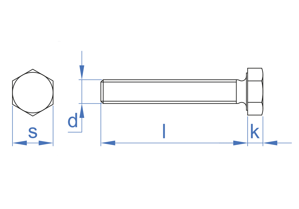 [TORNILLO HEXAGONAL DIN 933] Tornillo DIN 933, con cabeza hexagonal y rosca métrica completa. Se puede emplear en uniones mecánicas entre piezas de metal u otros materiales.