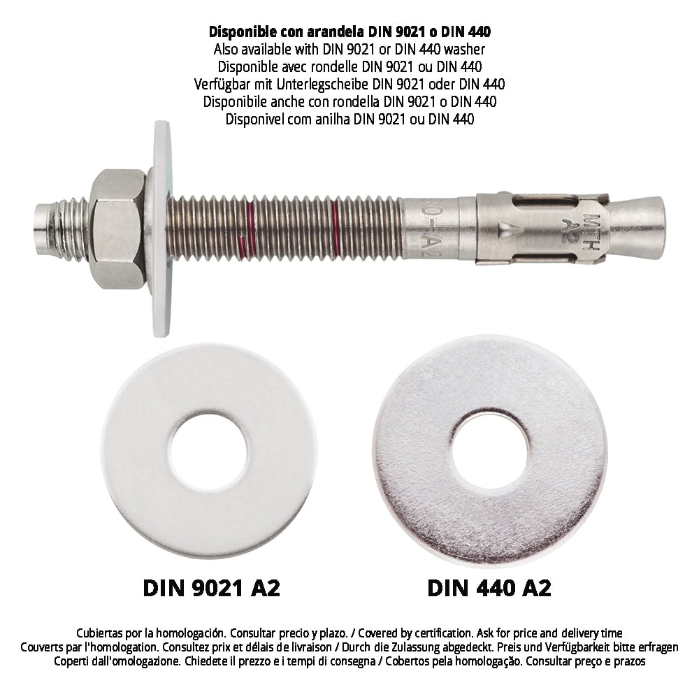 Anclaje de expansión, con rosca macho. para cargas altas en hormigón no fisurado. Homologado ETE Opt. 7 para aplicaciones estructurales. Eje y clip hechos de acero inoxidable A2, que asegura la durabilidad del anclaje frente a la corrosión.