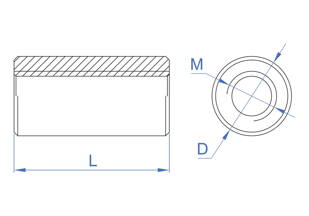 • [MANGUITO ROSCADO CILÍNDRICO] Manguito roscado cilíndrico, con rosca interior métrica. Está diseñado para prolongar el alcance de varillas roscadas o tornillos en instalaciones suspendidas u otro tipo de estructuras.