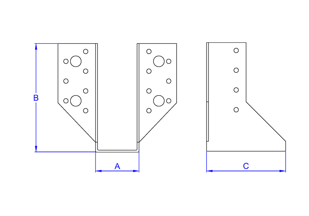 Soporte para vigas u otros elementos, diseñado para el montaje de estructuras con madera. Permite fijar piezas de madera maciza, compuesta o laminada a otras superficies de madera o materiales como hormigón y acero. Incorpora orificios de sellado. Asegura una fijación segura y resistente. Está fabricado en acero con recubrimiento Atlantis C2-L (clase de servicio 2).