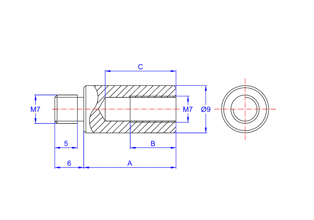 Prolongador cilíndrico para abrazaderas AB-PM7