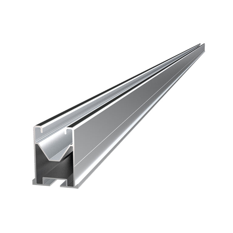 Perfil para la fijación de paneles solares en estructuras coplanares o triangulares. Se ensambla sobre accesorios de fijación anclados a la cubierta o la subestructura. Ofrece dos opciones de fijación, por su parte inferior o por sus caras laterales. Se puede desmontar y es reutilizable. Está fabricado en aluminio.