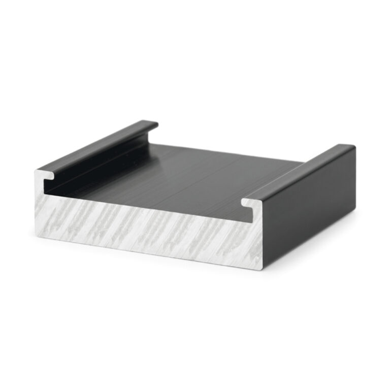 Galga para el montaje de paneles solares, de color negro. Sirve de apoyo para las grapas de fijación cuando se colocan en los extremos de la instalación. Su estructura garantiza una anclaje efectivo de las placas. Está fabricada en aluminio.