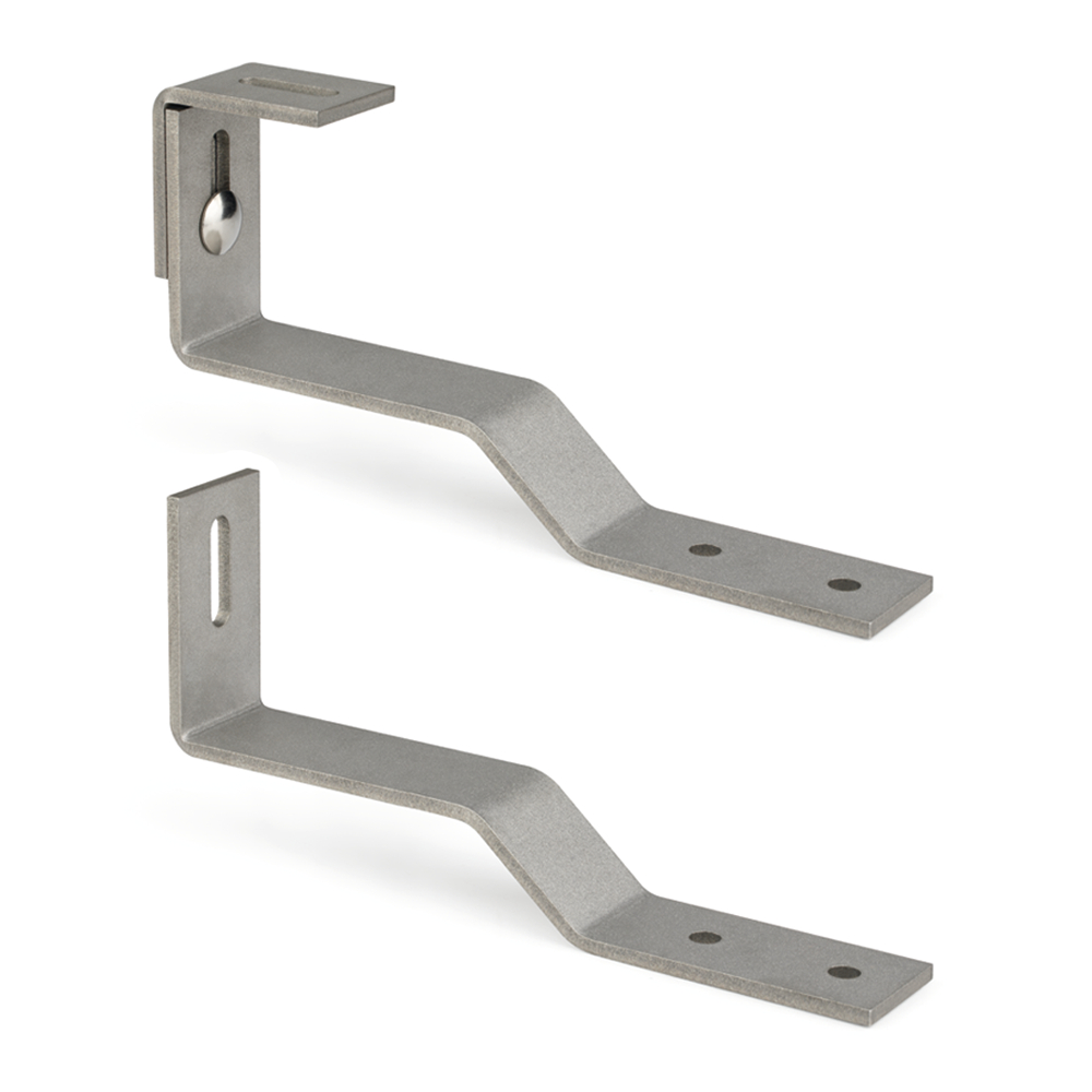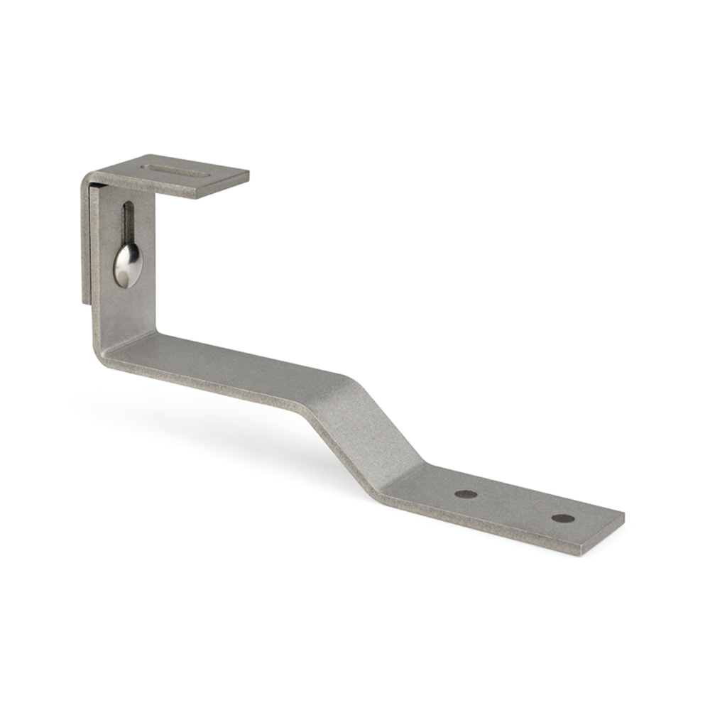 Gancho salvateja ajustable, diseñado para la instalación de placas solares en tejados con tejas planas. Se fija a la subestructura y evita tener que perforar las tejas. Está fabricado en acero inoxidable A2.