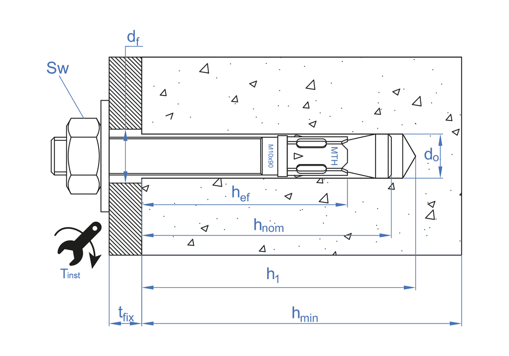 Anclaje para cargas altas en hormigón no fisurado. Anclaje de rosca macho, con expansión por par controlado. Homologado ETE Opt. 7 para aplicaciones estructurales en hormigón no fisurado. Eje y clip fabricados en acero ATLANTIS C4-M.