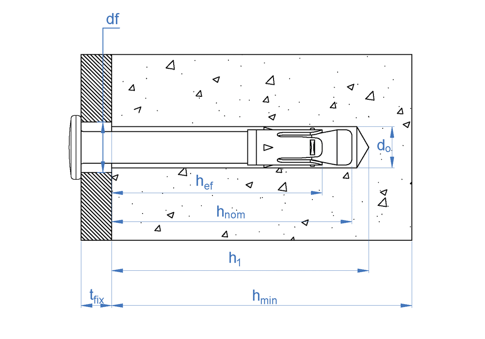 • [ANCLAJE DE GOLPE HOMOLOGADO] Anclaje homologado según la normativa europea ETA 24/0011 para aplicaciones no estructurales en hormigón. Cuenta además con una certificación de resistencia al fuego.