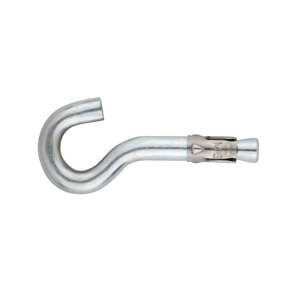 Anclaje de impacto con gancho, apto para hormigón fisurado y no fisurado. Diseñado para fijar elementos de cargas bajas en techos u otras superficies. El gancho permite el montaje de cables o cuerdas en distintos tipos de instalaciones. Homologado ETE para aplicaciones no estructurales. Anclaje de expansión, con eje de acero zincado y clip de acero Atlantis C3-L.