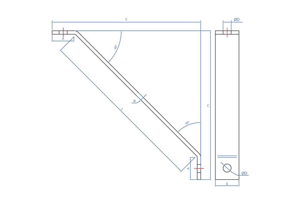 Peça de reforço para perfis perfurados Indextrut. Permite aumentar a resistência das estruturas feitas com guias perfuradas. Liga diagonalmente dois elementos previamente unidos perpendicularmente, como perfis horizontais fixados à parede ou a outro perfil vertical, distribuindo a carga. É feita de aço com revestimento zincado.