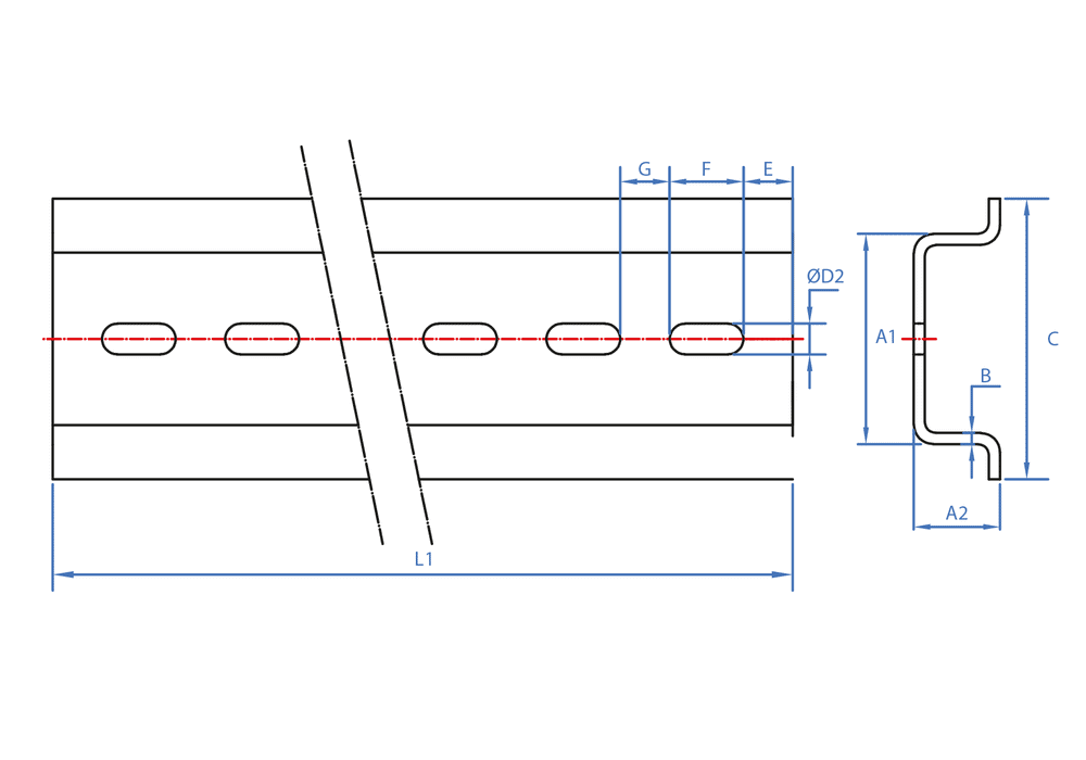 Perfil perfurado Omega, feito para aguentar cargas leves. Pode ser usado para instalar coisas como braçadeiras para tubos ou bandejas porta-cabos em diferentes tipos de instalações. Permite criar estruturas de suporte, suspensas ou fixadas à parede ou a outras guias. É feito de aço com revestimento Atlantis C2-M.