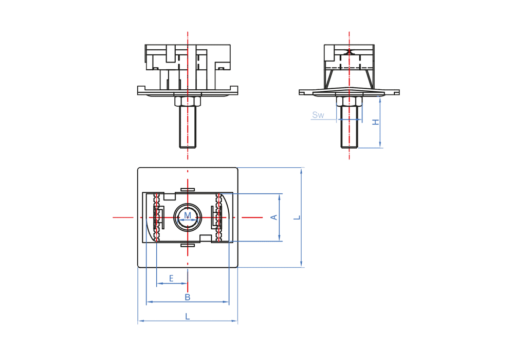 Batente de parafuso para guias perfuradas Indextrut. Tem um sistema de fixação rápida que agiliza o tempo de montagem. Pode ser usado para fixar elementos como braçadeiras a perfis em diferentes tipos de instalações. É feito de aço com revestimento zincado.