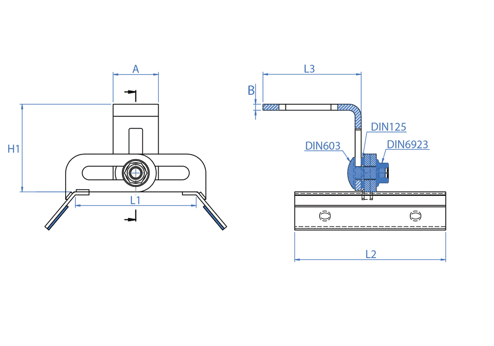 Suporte regulável para a fixação de estruturas de painéis solares em coberturas de chapa trapezoidal. Fixa-se às asnas por meio de parafusos. Inclui uma fita de butileno para garantir a estanquidade entre o perfil e a cobertura metálica. É fabricado em aço inoxidável A2.