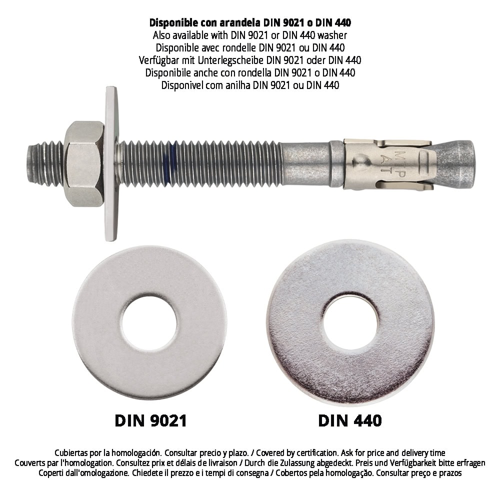 tfix - Espessura máx. a fixar 4 SW - Chave para instalação 19 df - Ø Elemento a fixar 14 Tins - Par de aperto (Nm) 60 hef - Profundidade efetiva 70 hnom - Profundidade min. de instalação 80 h1 - Profundidade min. do furo 85 d0 - Ø Broca 12 hmin - Espessura min. do material base 140 L - Comprimento 100 APAT12110 M12 x 110 Ø12 14 140 F 0 50 200 8423533896629